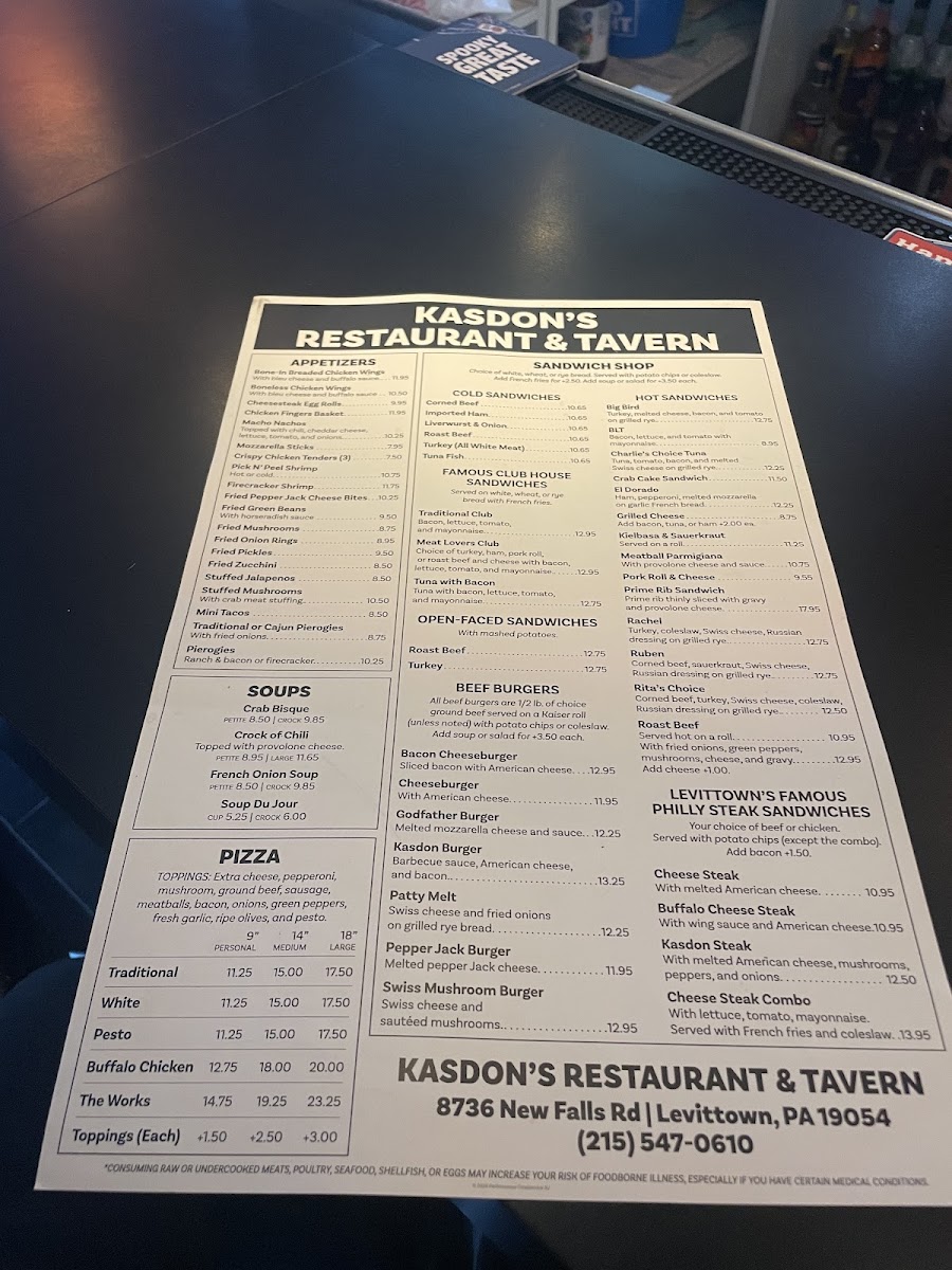 Welcome to Kasdon's Restaurant & Tavern, a local gem nestled in Levittown, PA, where nostalgia meets comfort food. This beloved establishment has stood the test of time, captivating patrons with its classic diner-style offerings. The menu features crowd favorites like their modestly celebrated cheesesteaks and Kasdon fries, perfect for friendly gatherings or family meals.